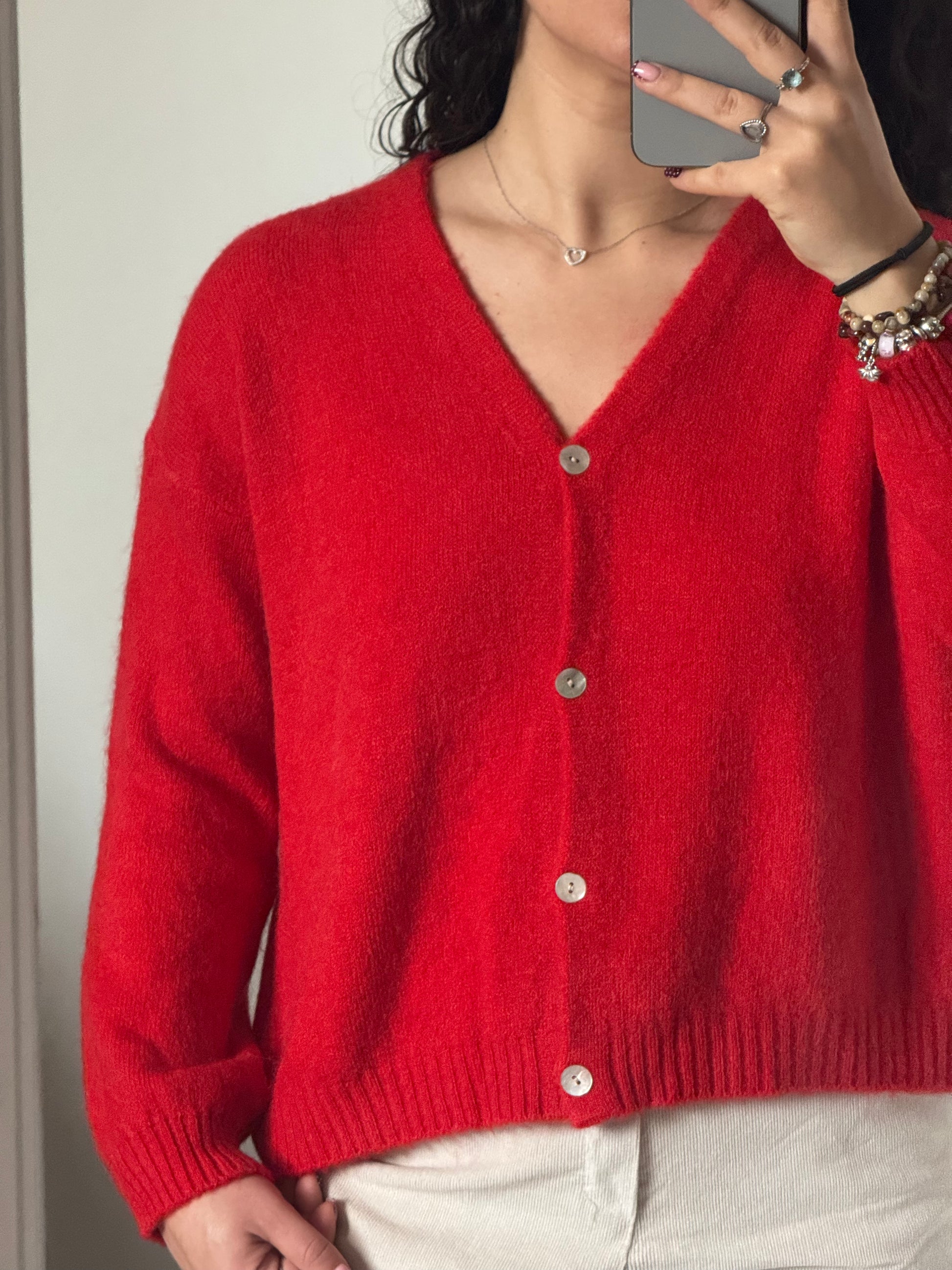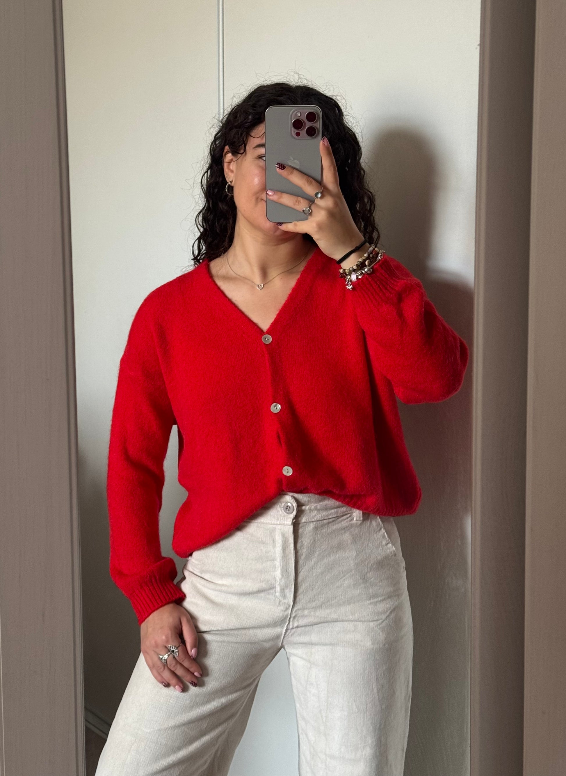 ♥︎ Gillet tout doux avec petits boutons nacrés, col v.